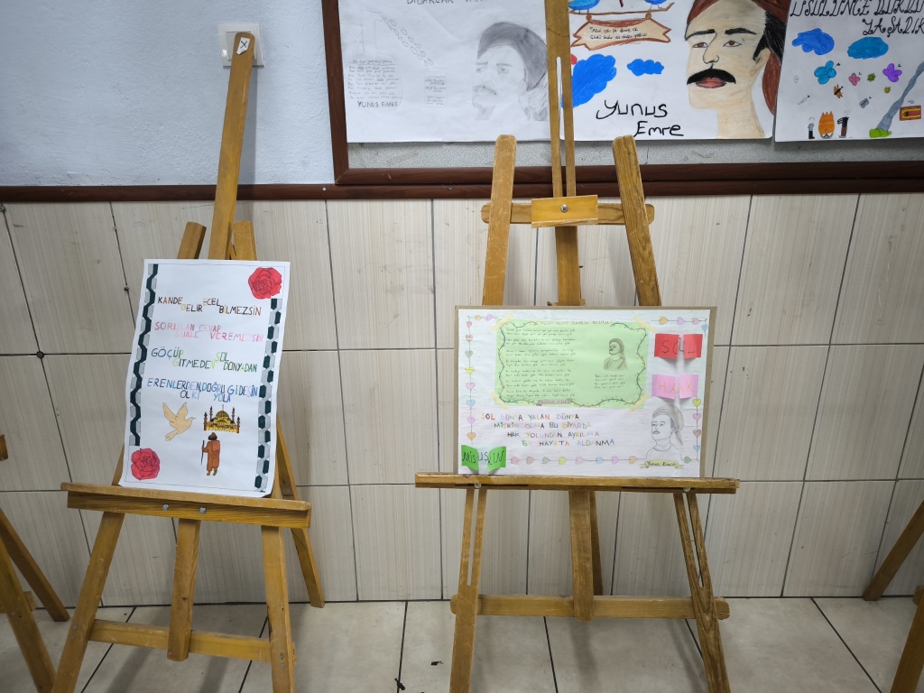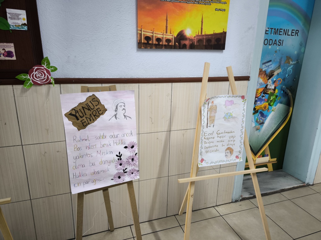 Kasım ayı etkinliği olarak öğrencilerimiz Yunus Emre temalı şiirlerini kendilerinin yazdıkları afiş hazırladılar ve okul birincisi olan afiş ilçede düzenlenen afiş yarışmasına gönderildi.