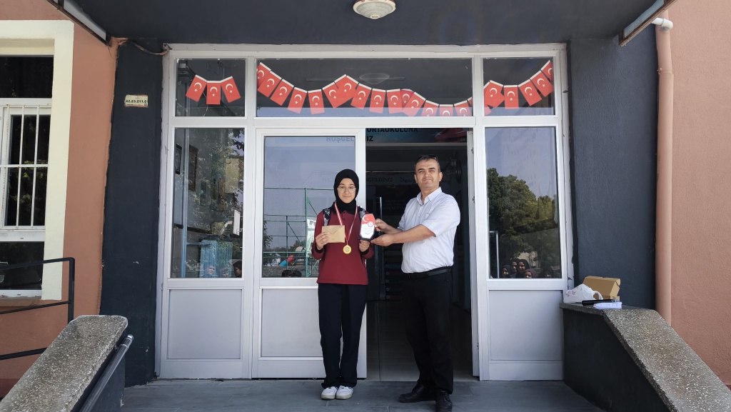 Okulumuz 8.Sınıf Öğrencisi Havvanur ÖZTÜRK bursluluk sınavını kazandı. Kedisinii, ailesini ve öğretmenlerini tebrik edip başarı plaketi verildi.